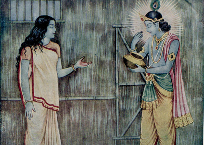 This story has been mentioned in one version of Mahabharata. It says that on the day of Sankranti, Krishna cut his little finger when he was handling sugarcane. Seeing this, Rukmini, the queen sent out to get the help, and Sathyabama, his other consort, rushed to get the cloth herself. But Draupadi simply tore off her sari and bandaged his finger. From that day on, Krishna promised to protect her through thick and thins. The word he said was: “Akshyam”, which means “May it be unending.”